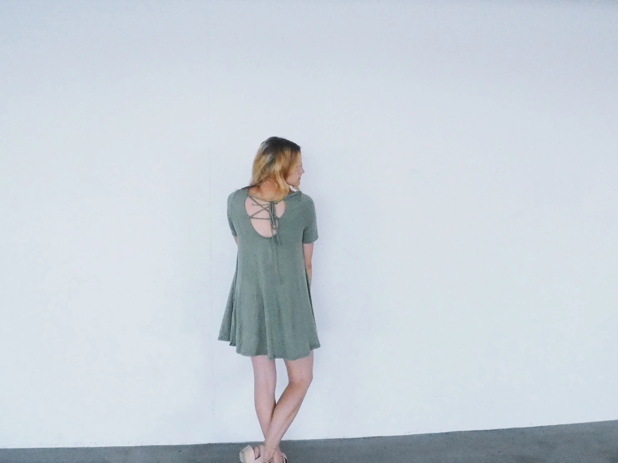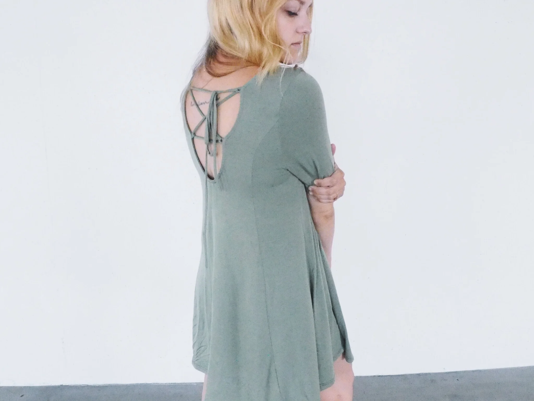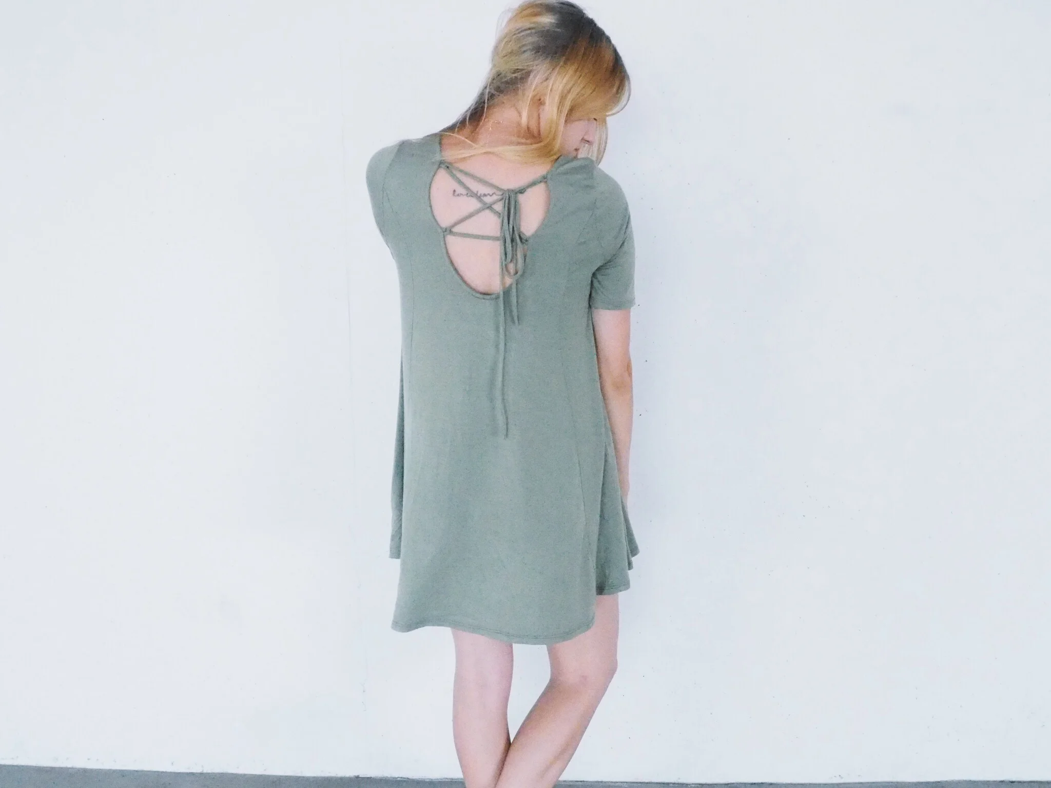 Olive Bamboo Lace-Up Back Dress