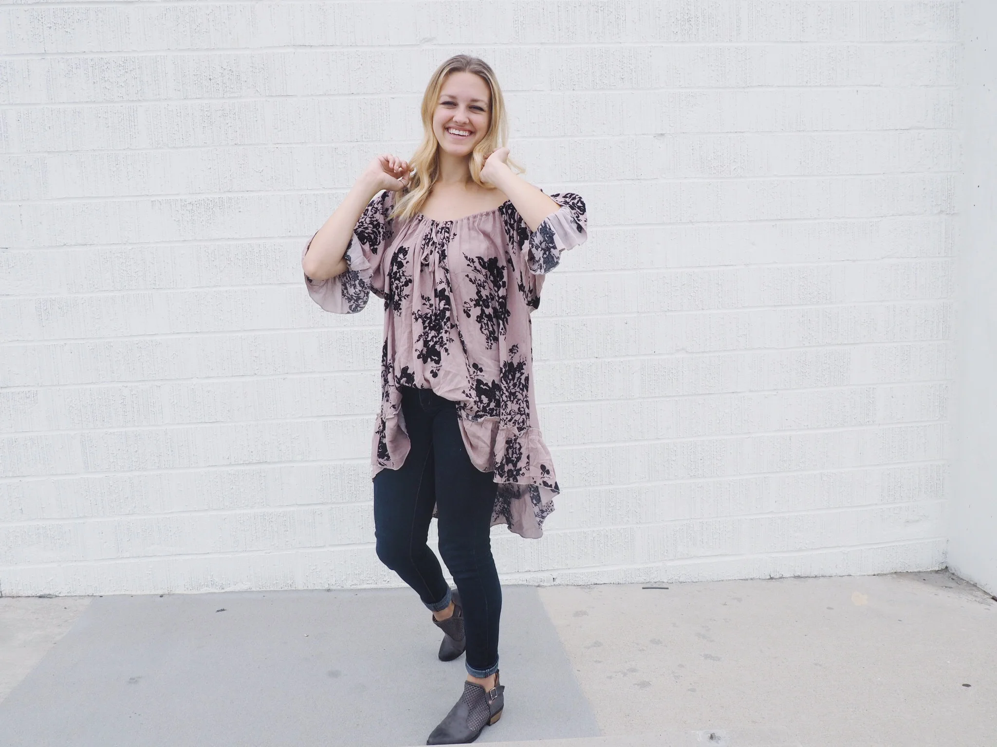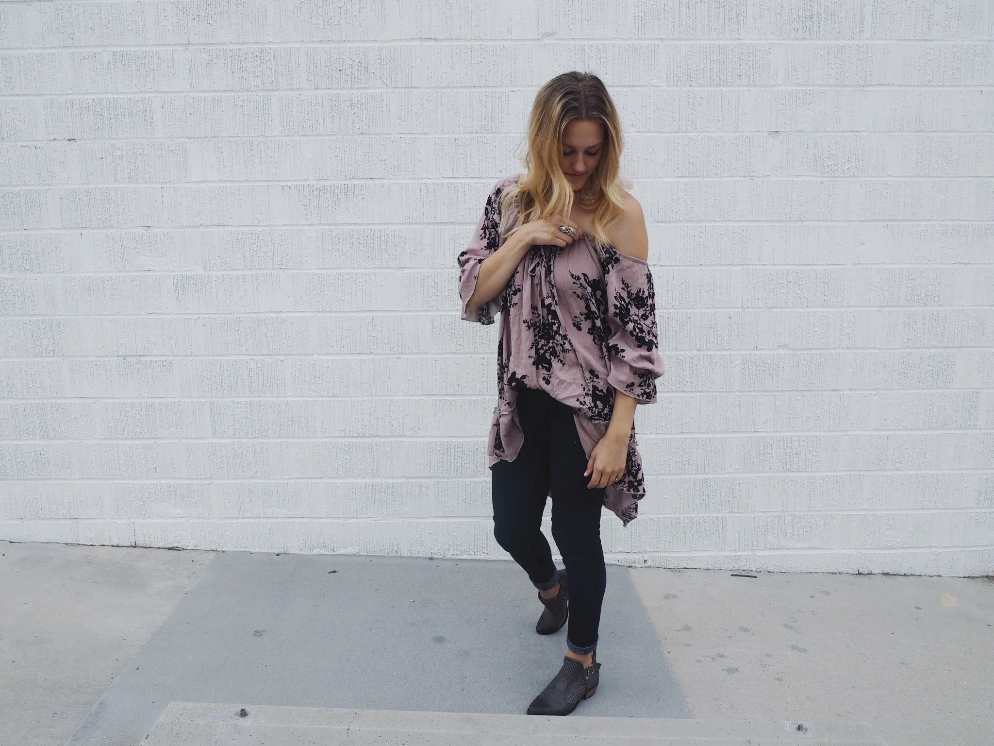 I'm loving this off-the-shoulder trend, and I know I'm not alone... otherwise, it wouldn't be a trend. I was drawn to the floral pattern on this shirt, and upon receiving it I realized that it can be either a dress, or a blouse.
