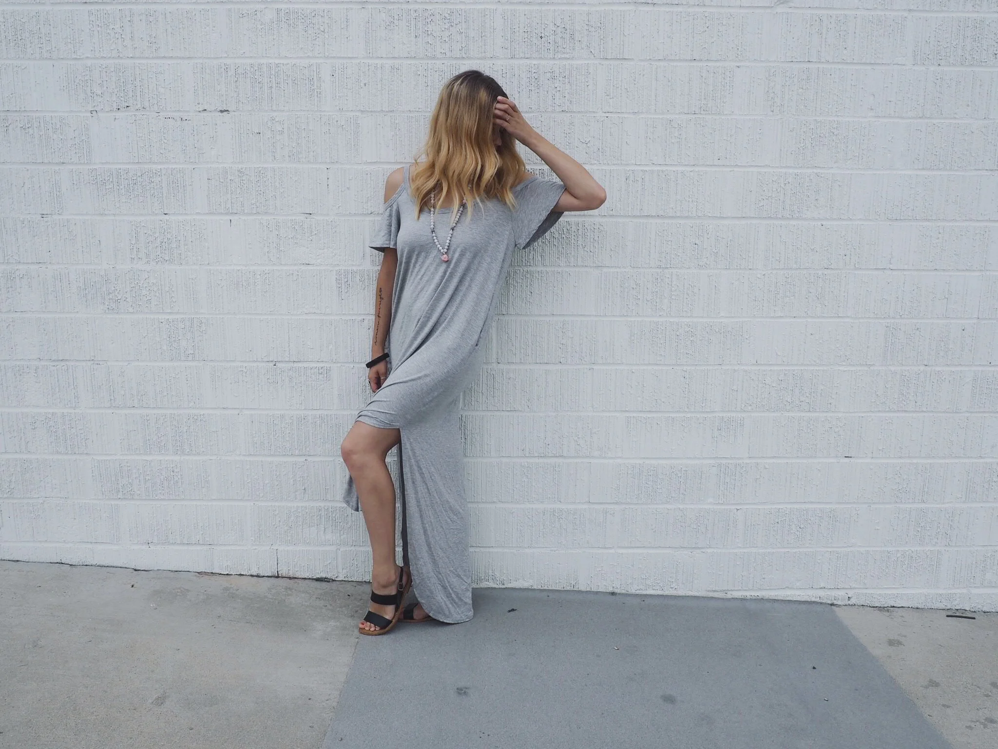 Another trend, the cold shoulder. I'm a sucker for maxi dresses, but I rarely find one I feel comfortable in. This one is just the right amount of flowy, with cute slits in the side.